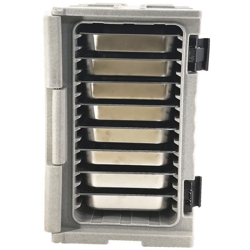 ·Il design unico di una cerniera a spillo, una serratura di nylon forte e resistente, può bloccare la porta in modo sicuro e formare una chiusura.·Il lato anteriore della scatola è dotato di una clip per il menu esterno in lega di alluminio,che è conveniente per la gestione del trasporto e può ridurre il numero di casse di apertura per ottenere un migliore isolamento ed effetto di raffreddamento.·Le ruote di nylon sono installate sul bottone della scatola, estremamente durevoli, in modo che l'operazione di consegna sia molto comoda e veloce.